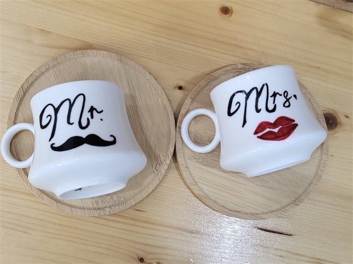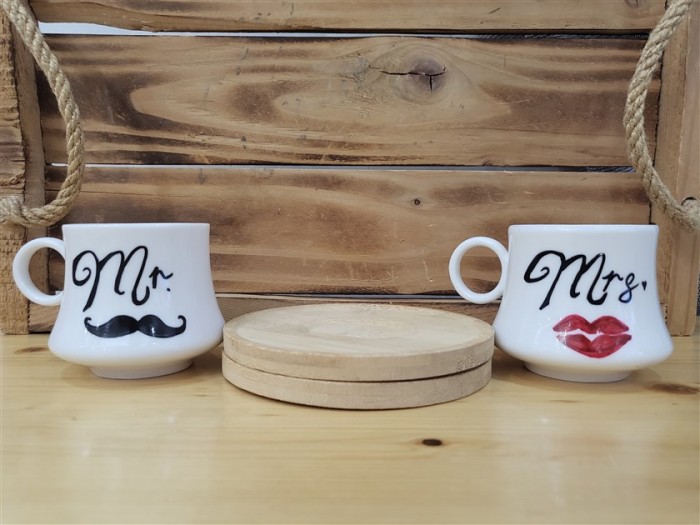 Çiftlere Özel 2 Kişilik Mr. & Mrs. Temalı Kahve Fincanı Takımı Peluş Kalp Hediyeli